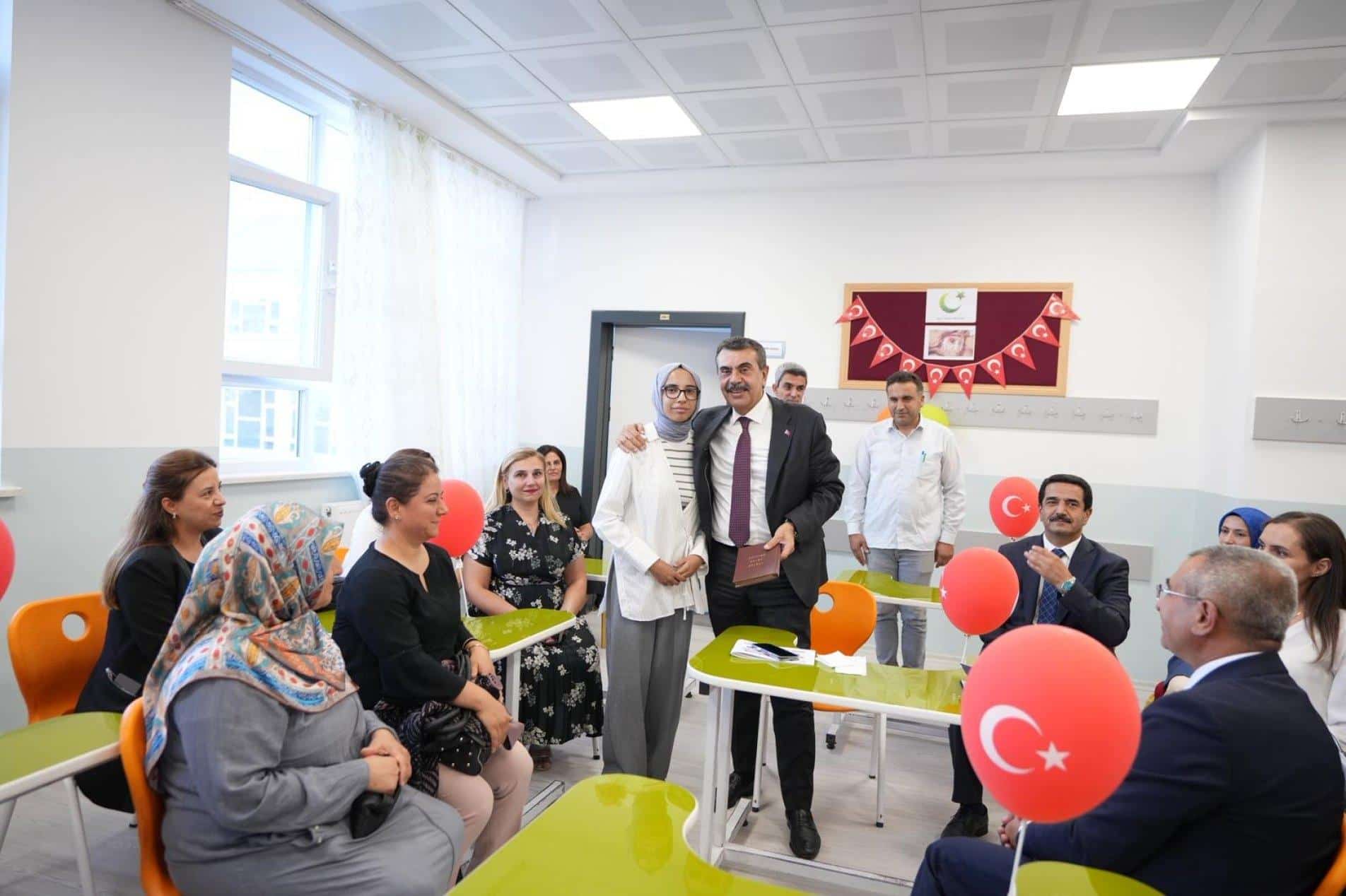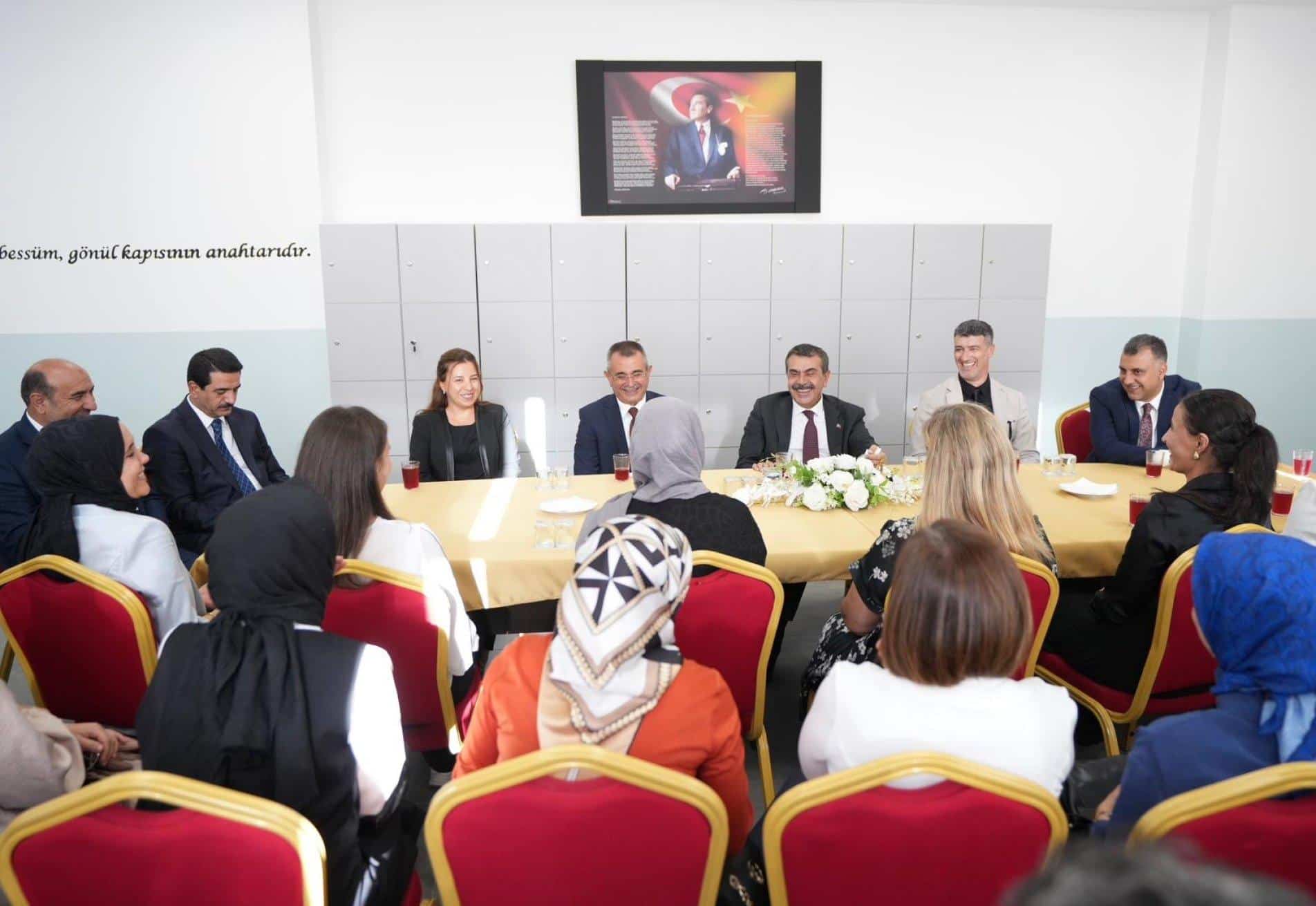 Bakan Tekin, daha sonra öğretmenler odasında öğretmenlerle bir araya gelerek eğitime dair fikir alışverişinde de bulundu.